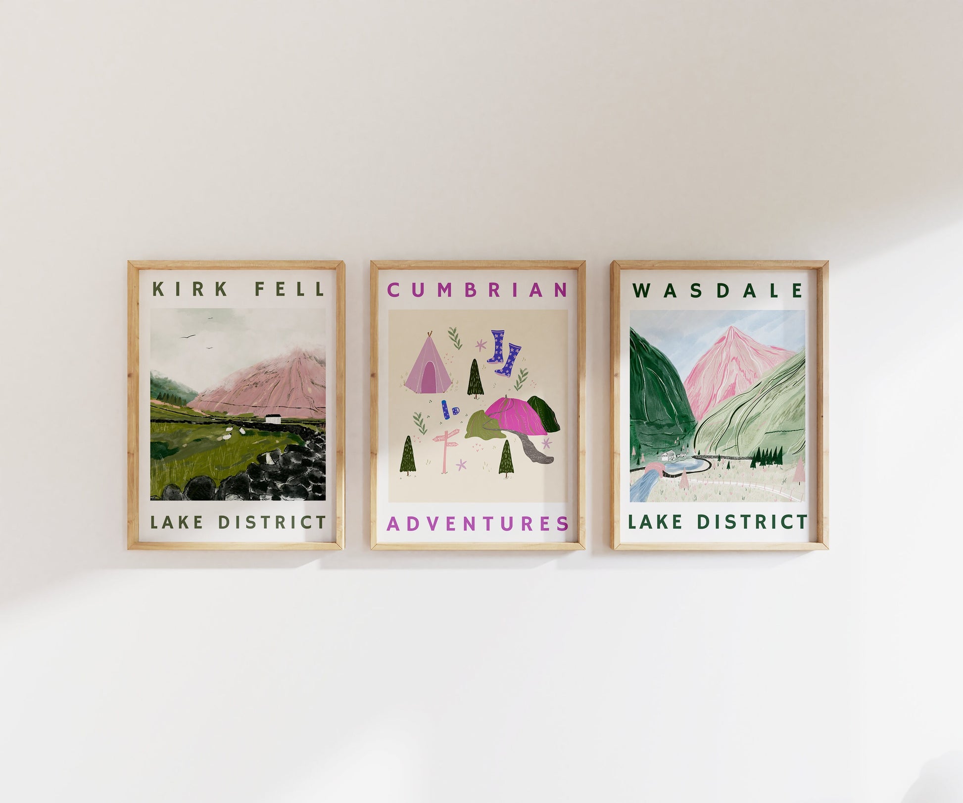 This listing is for the Cumbrian adventures print only, the frame is for illustration purposes only. (The image with a selection of three posters are to show other options available in my shop).