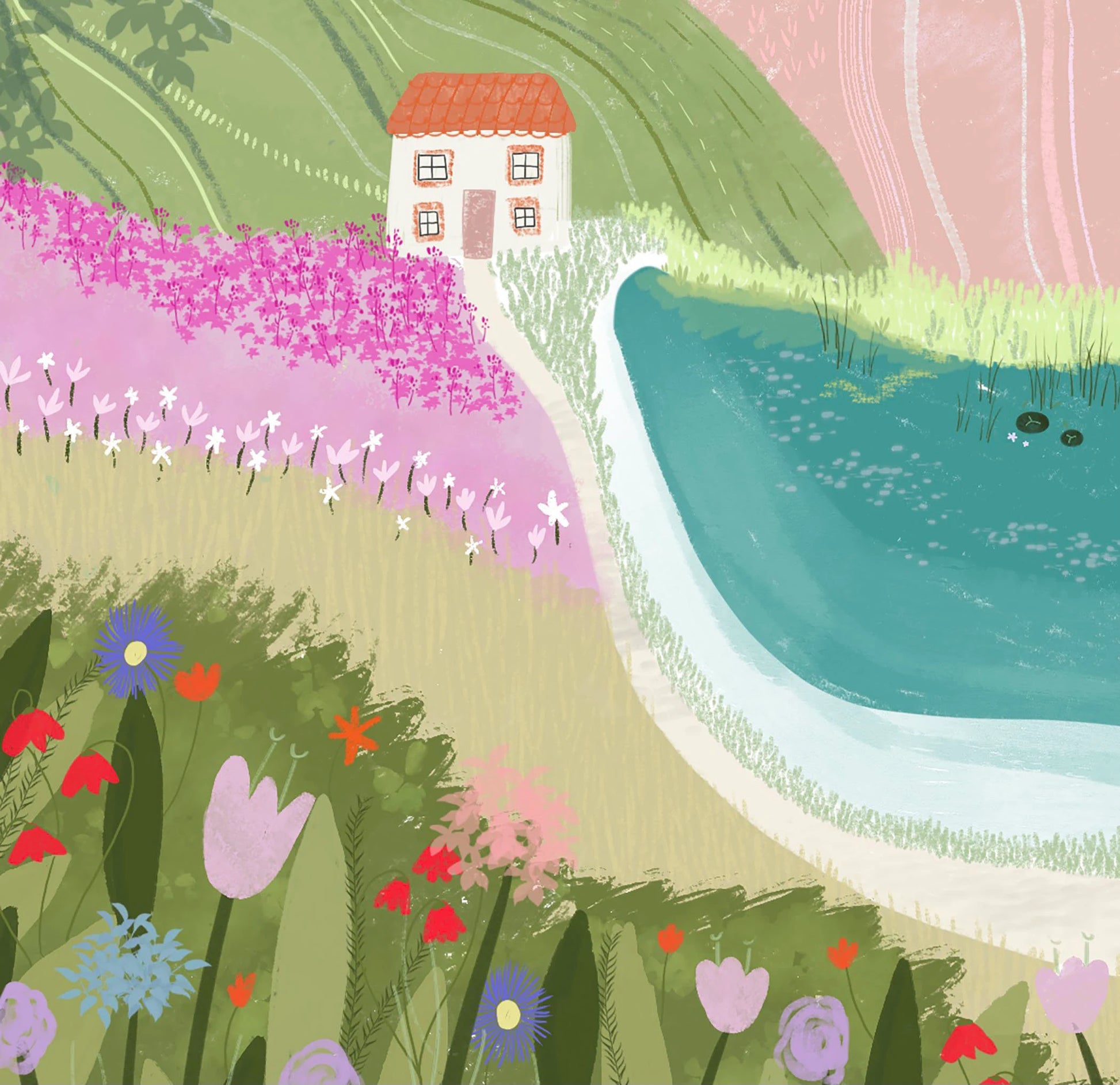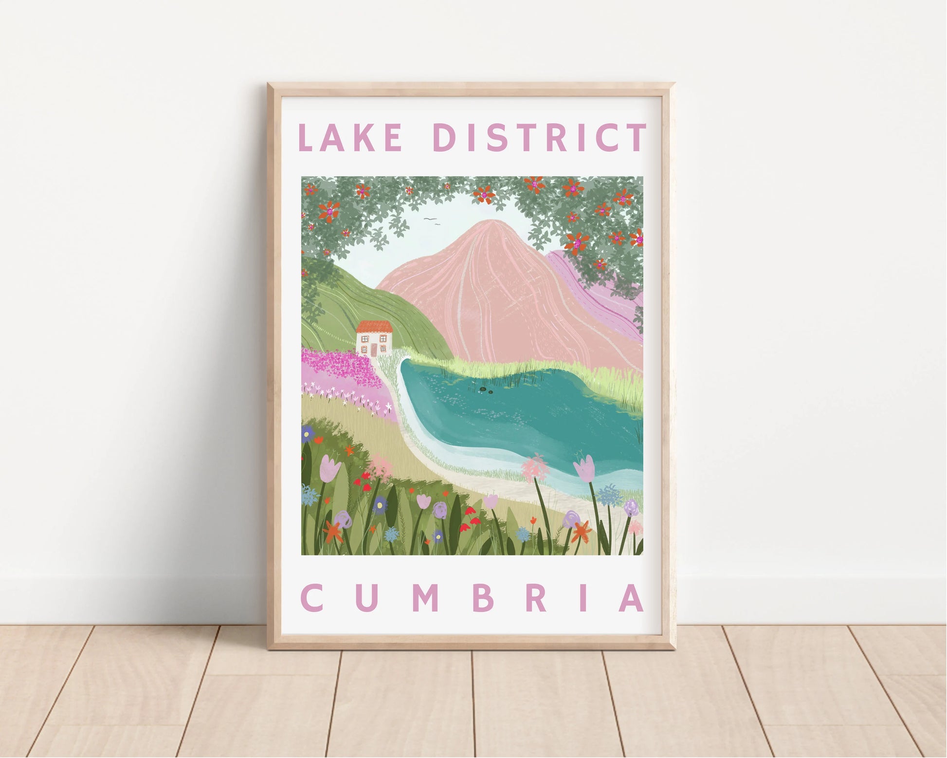 This artwork is called 'House by the Lake'. This piece was inspired by the lovely Lake District National Park, England and the quaint and cute cottages that you find within the picturesque landscape. With a backdrop of mountains, a lake and framed with flowers, this illustration is made up with a variety of natures wonder. I wanted to encapsulate the many factors of the Lake District that add to its beauty and what makes it such a lovely place to visit. Whether you're looking to decorate your living room, office, or bedroom, this poster is the perfect choice for anyone who loves the great outdoors.