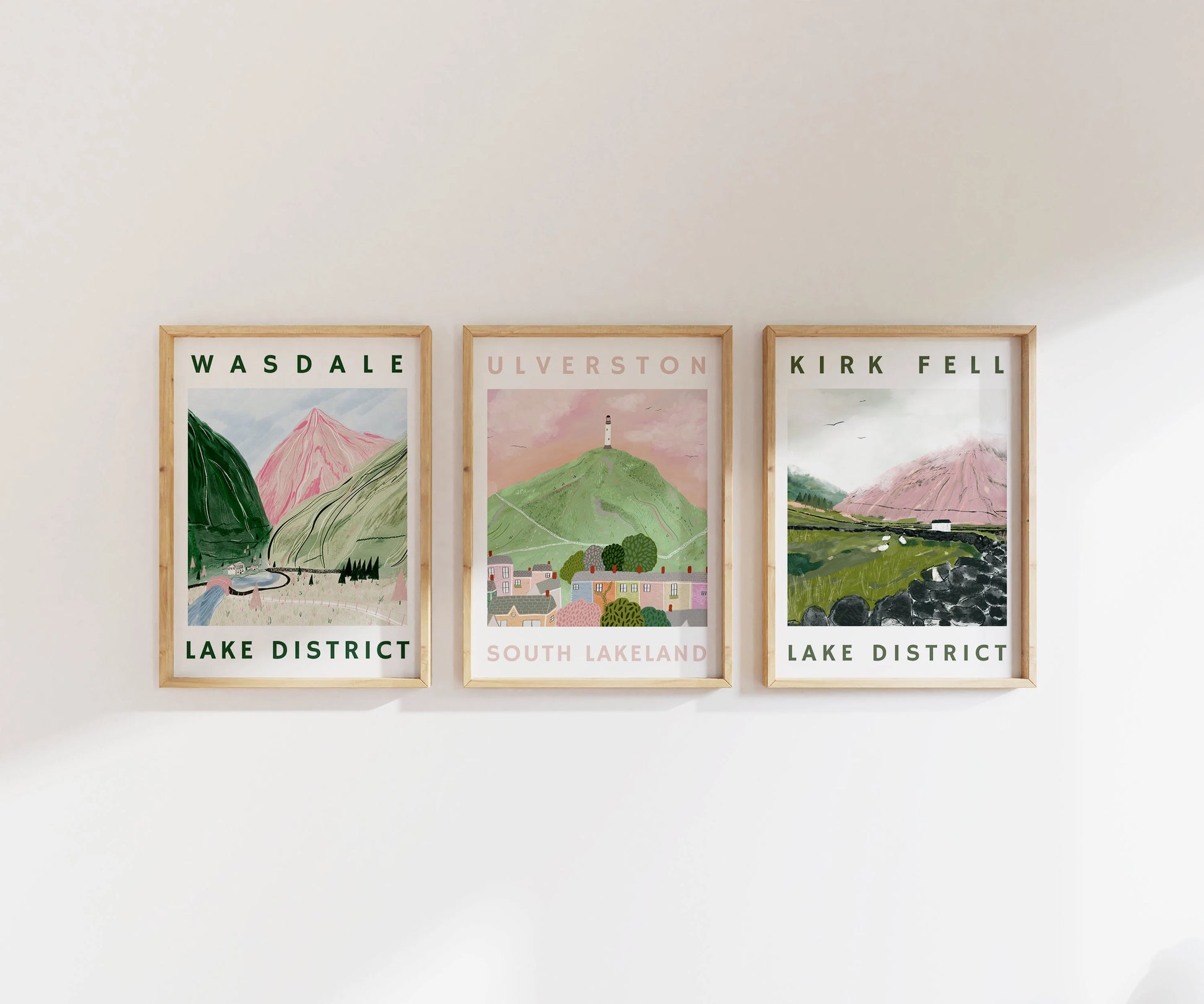 A4 / A3 Ulverston South Lakeland poster, The Hoad Cumbrian Illustration | Travel Hiking | Art Walking Gift Adventure Print.